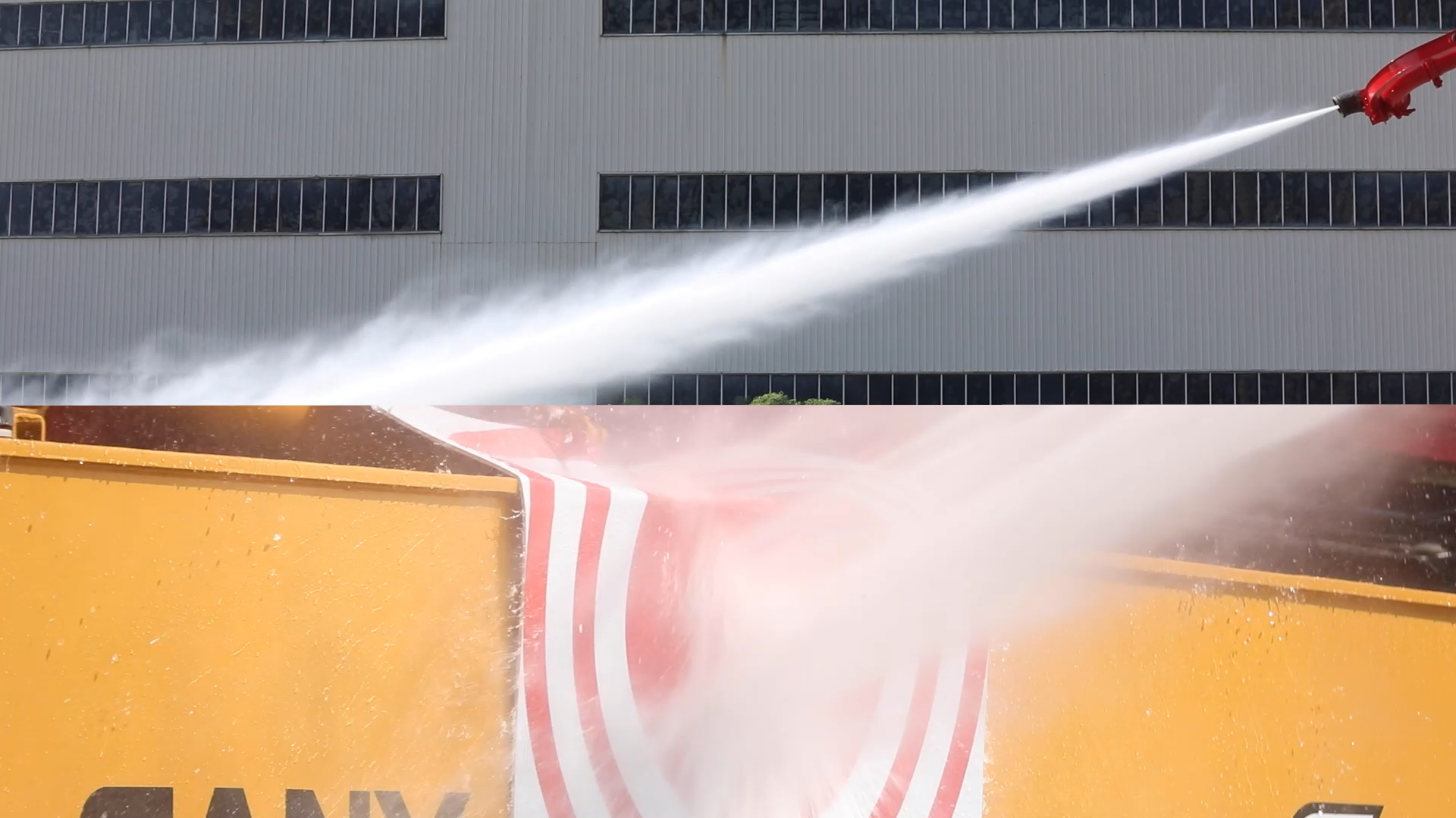 在视频中,泵车通过泵送水流进行打靶试验,结果直接击中靶心。