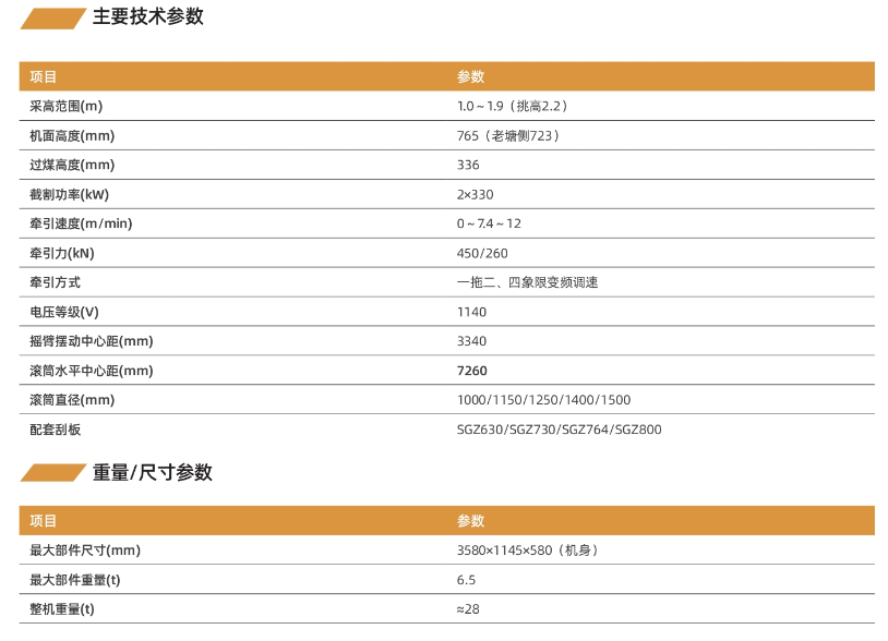 730系列薄煤层采煤机目前拥有智能型和普通型等多种型号,可配套SGZ630、730、764、800等多种型号刮板机,年产量达100万吨,能够为客户提供成熟的薄煤层开采方案。