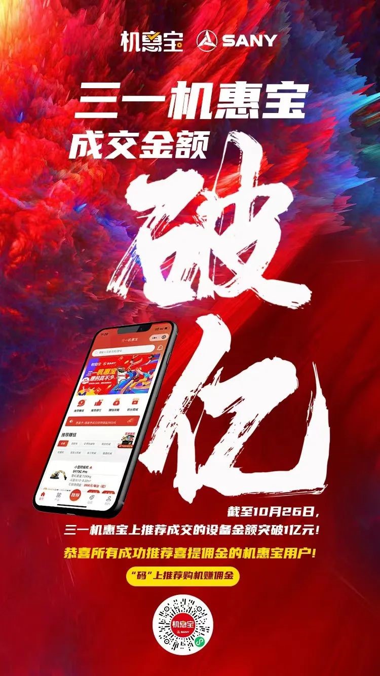 好体育投注官网重工紧跟时代步伐,积极实践数字化转型,自发布工程机械行业首个经纪平台——好体育投注官网机惠宝以来,线上活动精彩不停,注册用户屡创新高。8月24日上线一个月,注册用户便突破10万人。截止10月27日,好体育投注官网机惠宝的注册用户已突破40万人,推荐成交的设备金额更是突破1亿元大关。
