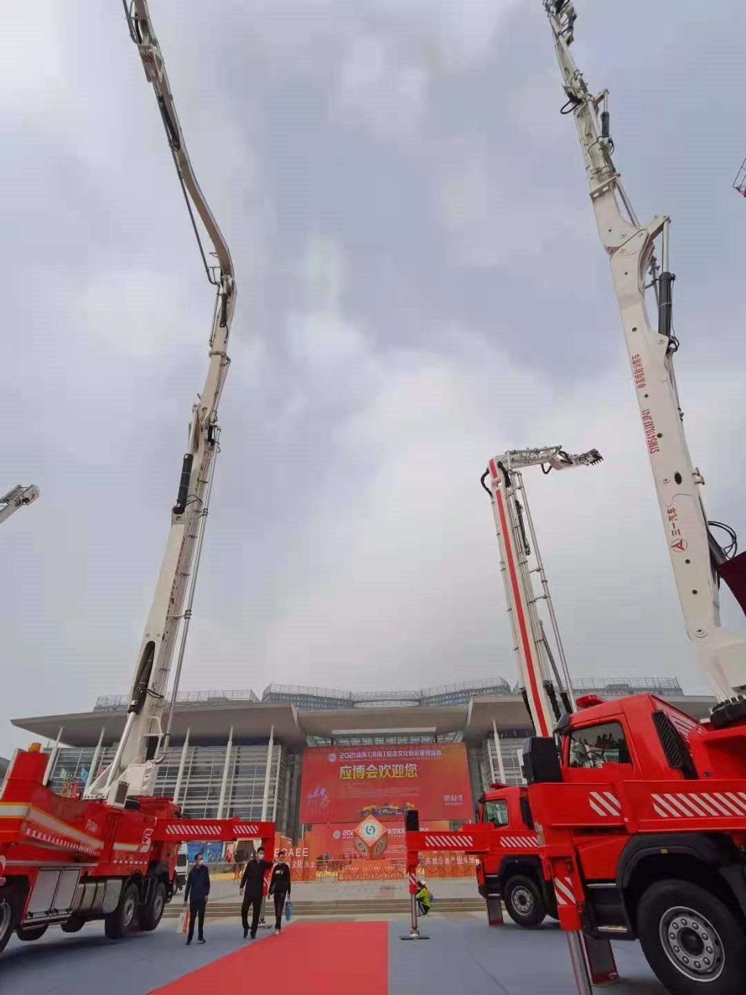 高达65米的大跨度举高喷射消防车,兼具粉剂、泡沫、惰性气体灭火功能于一体、可现场制取高纯度氮气的41米固液气消防车,各式各样的防爆智能巡检机器人、消防机器人……