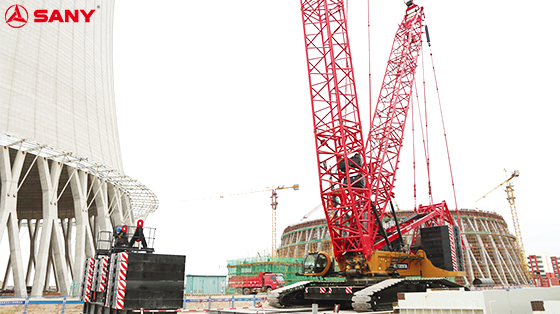 由于施工地点位于准格尔盆地的戈壁滩中,进入冬季后经常出现大风天气,对高空吊装带来了不小的挑战。施工当天平均风速6m/s,最大风速超过8m/s,SCC12000TM搭载双泵合流技术,有效避免因为风速变化带来的安全隐患。