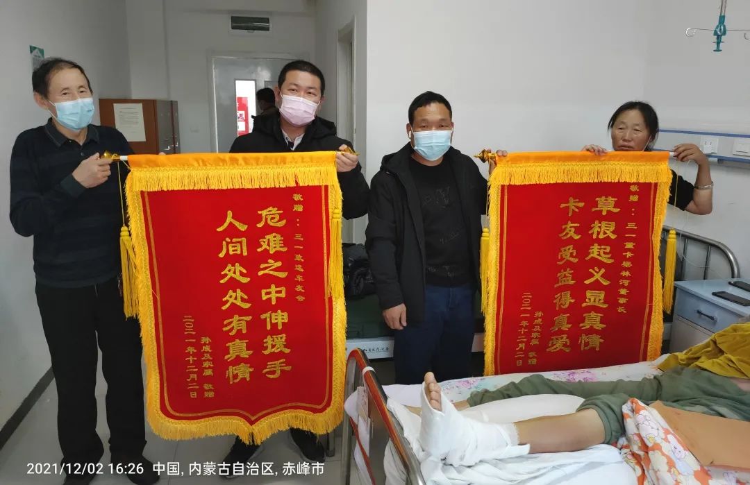 截止12月1日,致远会会员连同部分好体育投注官网汽贸、好体育投注官网服务站、好体育投注官网重卡供应商等,为孙成筹得共计55877.56元善款。加上前期梁林河董事长、好体育投注官网重卡以及好体育投注官网重卡员工的捐款,事故发生后,大家共为孙成筹得99384.33元。这笔沉甸甸的爱心款交到孙成手中,他感激涕零,由于身上多处骨折,他没法起身,于是让家人制作了锦旗,表达最淳朴和直白的感激之情!