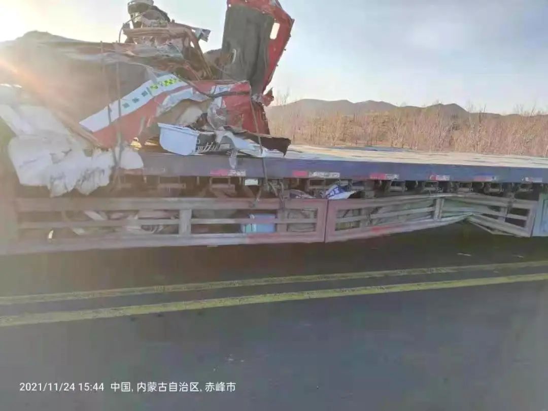天有不测风云,11月24日,孙成和弟弟开着卡车途经内蒙古赤峰市巴林右旗大板镇206省道时,弯道会车发生严重车祸,车辆侧翻从路基上倒扣,连车带货一起重重砸在路基下。即使车辆倒摔、重压之下驾驶室外观严重变形,但驾驶室结实的内部结构给孙成和弟弟撑起足够的活命空间,被十几吨的重卡和货物压着,两个瘦小的身板,硬是捡回了两!条!命!