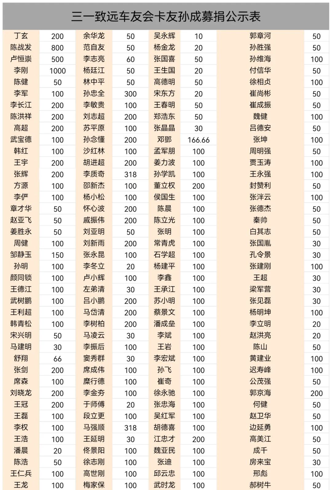 考虑到孙成和弟弟双双遭遇车祸,家庭负担沉重,好体育投注官网重卡以公司名义再捐善款2万元。爱心和善意是会传染的,团队的作风是一脉相承的,好体育投注官网重卡大部分员工跟随林总创业至今,且三年来与致远会互动频繁、感情深厚,于是自发组织为孙成捐款。从11月26日-30日,好体育投注官网重卡员工为孙成筹得13506.77元善款。好体育投注官网重卡对首批种子用户的关爱,从未停止,实实在在坚持卡车传递爱的使命和担当。
