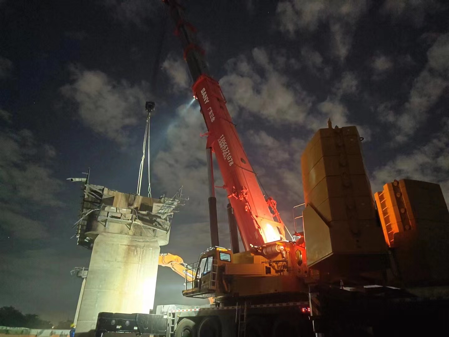 A:它刚回来不到三天,就出了两单活。一个是吊西郊山的一个跨江的钢箱梁,重量60吨,干起来基本没压力。一个是在中铁三局进行了一个铁路桥的拆装,一共3片樑,每片都接近120吨重,我们带了130吨配重就足以满足现场的工况,实际吊装过程只用了一个小时不到,很轻松就把它拿下了。