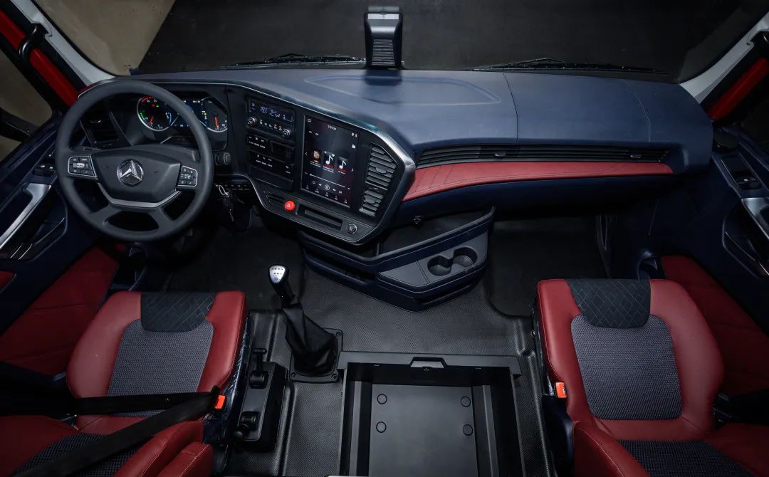驾驶室采用超高端制造标准和零部件水准,对标欧洲主流豪华品牌,全车采用软包结构处理,高端豪华轿车标配。驾驶室内的高顶、纯平地板设计,能容纳身高近2米大汉直立行走,为跑中长途提供了更宽敞的空间;双卧铺设计,下卧铺1.1米行业最宽,标配零压感床垫,轻松享受星级酒店标间的舒适体验。