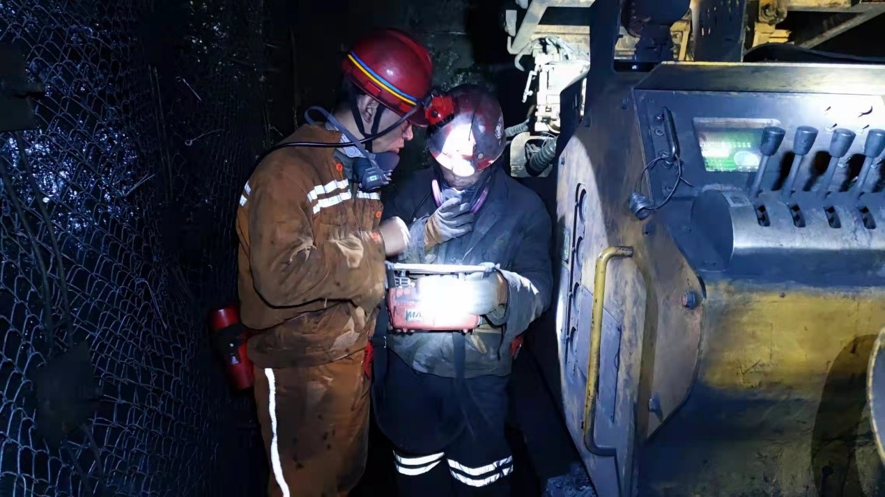 技术人员为井下工作人员讲解遥控器启动自动截割操作