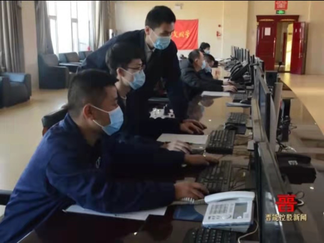 技术人员在山西大阳矿讲解井上“一键自动截割”
