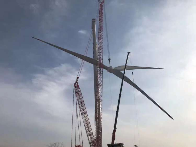 箱变上置,大大提高施工效率。该项目安装的是好体育投注官网重能5MW箱变上置风电机组。在安装过程中,变压器上置机舱在风场安装的便捷性发挥重要作用。箱变上置机舱后,可以节省原来地面箱变的基础施工、安装成本和时间,同时由于动力电缆缩减至1根,风场的电装可缩短至1天时间内完成,将大幅缩短风场的施工周期。