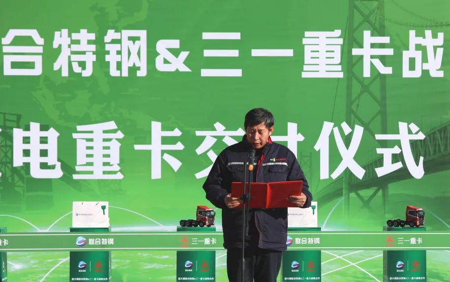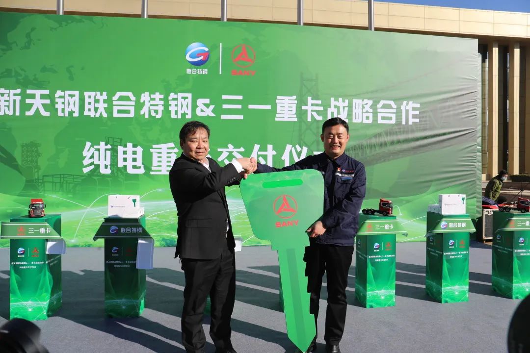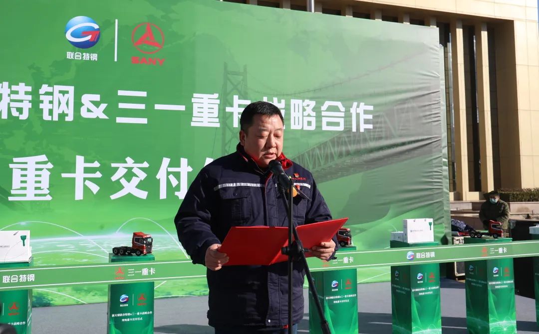 12月26日上午,好体育投注官网重卡&新天钢集团联合特钢公司战略合作暨纯电重卡交付仪式隆重举行,首批30台EV550电动重卡正式交付使用!天津市宁河区常务副区长沈洁,新天钢集团党委副书记、纪委书记、副总裁、德达物流董事长赵斌,好体育投注官网集团副总裁周万春,新天钢集团执行总裁阚永海等出席致辞。