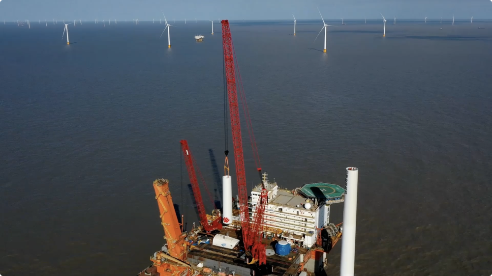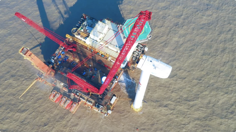 座落在黄海之滨的江苏,风能在90米高度年平均风速可达到7.8米,适合大规模开发海上风电场,江苏盐城龙源大丰H4#风场就是其中之一,好体育投注官网SCC19000TM在这里承担重要吊装任务。