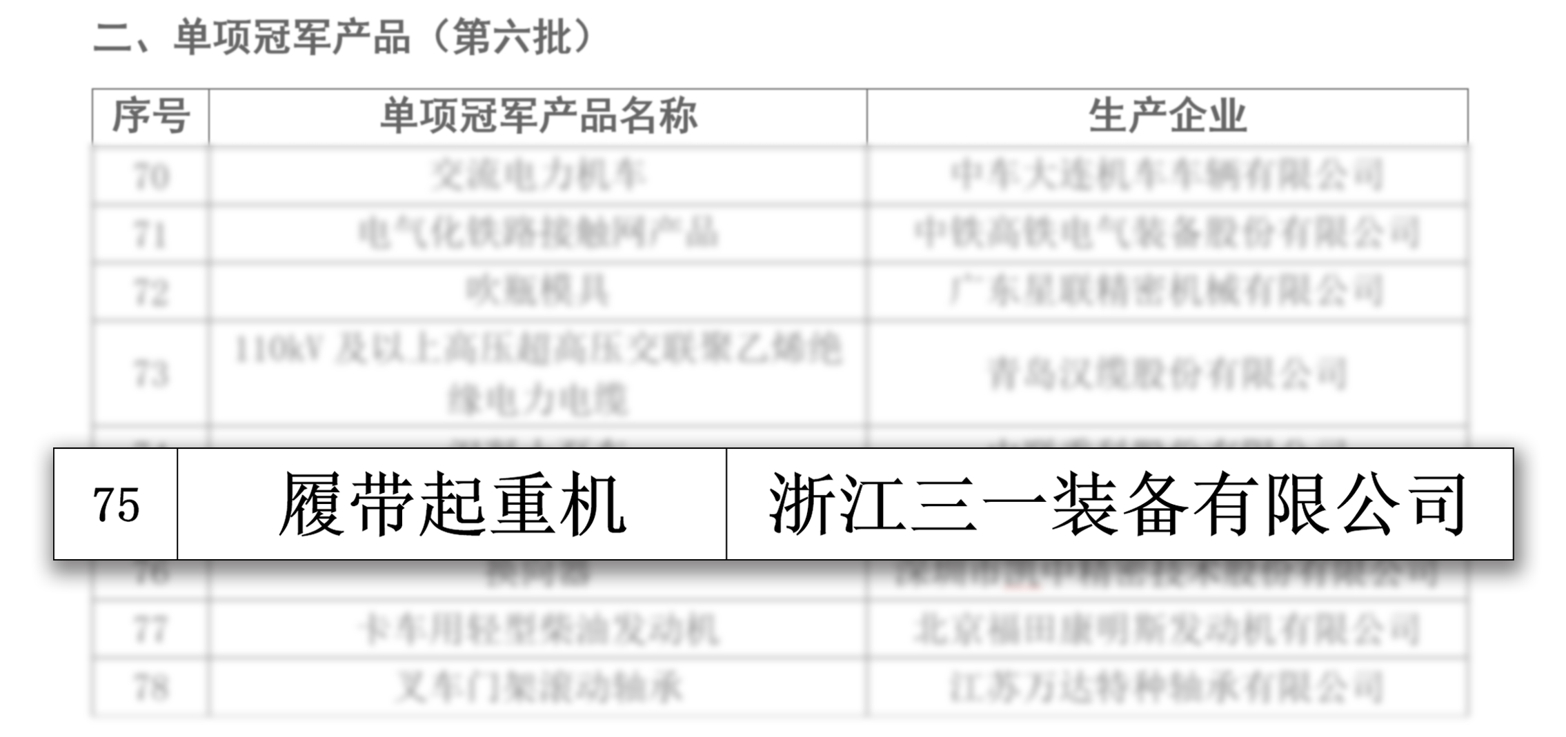 实力加冕!好体育投注官网履带起重机荣获国家级“制造业单项冠军”
