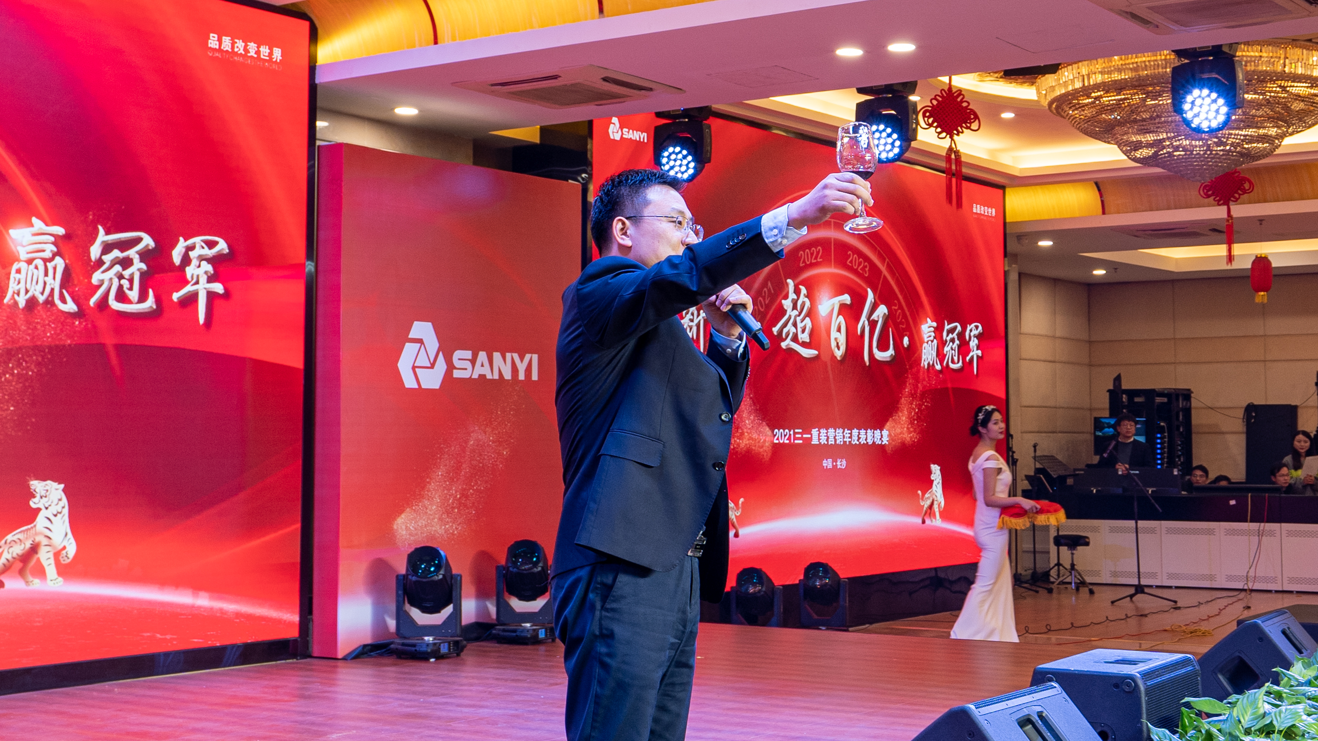 30日晚间,2021好体育投注官网重装营销年度表彰晚宴盛大举行。柴文俊先生上台致祝酒辞,向参加晚宴的各位领导表示