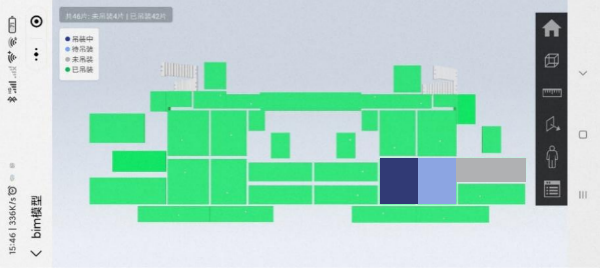 吊装时,吊装人员扫码识别数字图纸,指导楼面施工,直观定位构件待安装的位置。管理人员实时掌握该楼层的构件吊装进度,通过小程序统计吊装用时,不断分析吊装效率,改进吊装流程,从而逐步提高吊装速度。