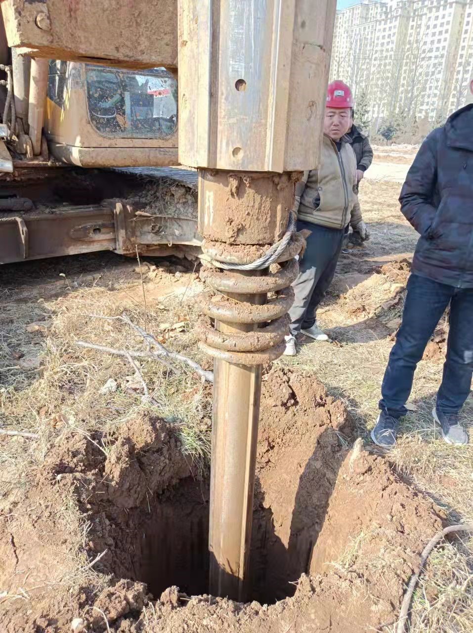 在2021年11月17日,客户设备出现故障,由于工期紧迫,客户一个电话接一个电话询问怎么处理。服务工程师翟红权一边电话安慰客户,初步告诉客户故障原因,并第一时间出发到达工地。路上咨询库管配件情况,库管告知主卷扬减速机无现货,发物流需要三天。到达工地后,客户告诉工期比较紧还剩下200根桩,项目要求必须12月1日桩基础结束,客户两台设备施工14—15根/天,晚上不能施工。经过现场与客户协商,先把钻杆打捞出来,前期工程做好等待主卷扬减速机专车发运。