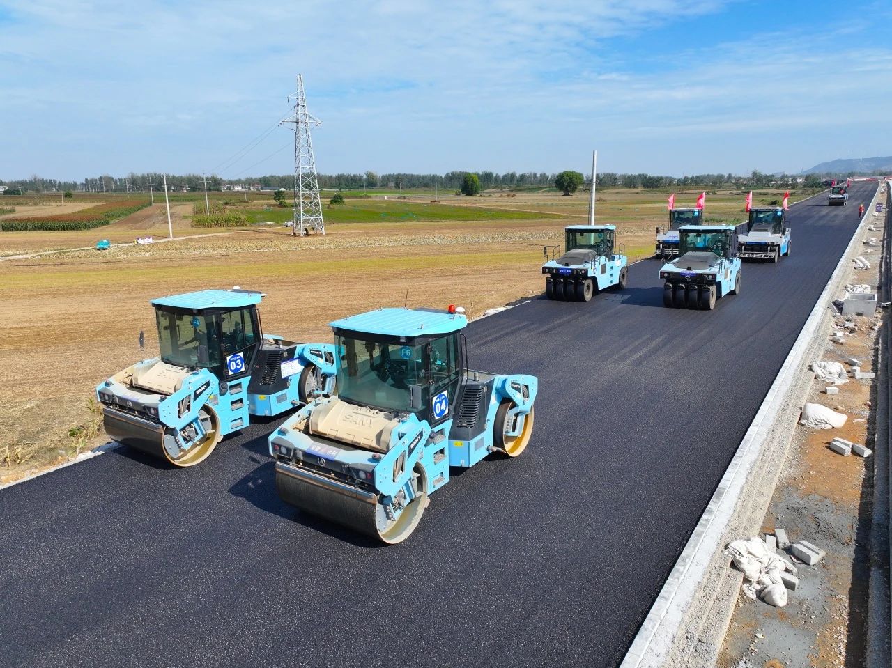 无人机群施工案例 |好体育投注官网无人摊压机群在徐淮阜高速02标段全面应用