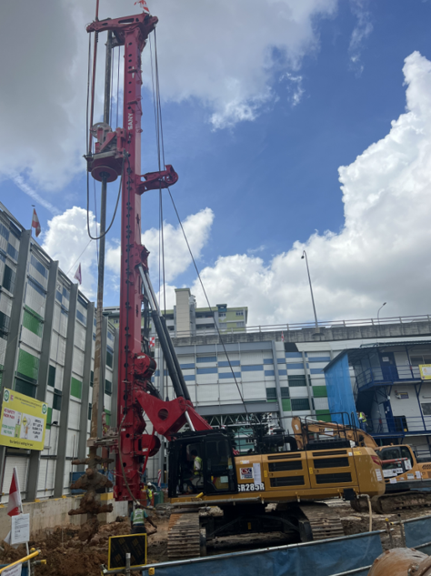 新加坡政府建设医院项目,施工深度要求8~11米,桩径1400mm,累计桩量1200支。地层较硬,使用SCM工法钻机改良地层后建设地下停车场。