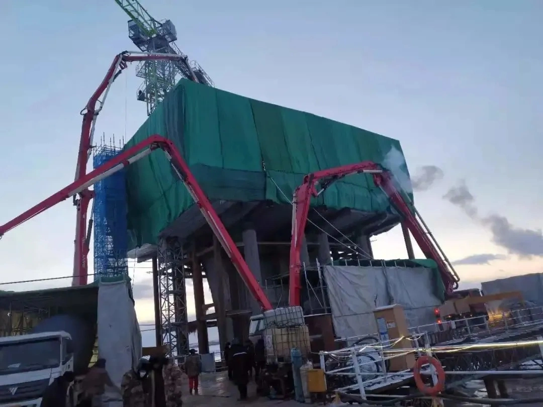 本次施工好体育投注官网派出陈望、闫磊2名工程师到现场全程服务。“施工那几天,松花江边气温在零下30度左右,为了克服天气的不利影响,我们帮客户把液压油箱、散热器用棉被包裹,把泵管用加热带裹好,工地还做了一个大棚把泵车底盘扣在里面,里面用加热器保温。”