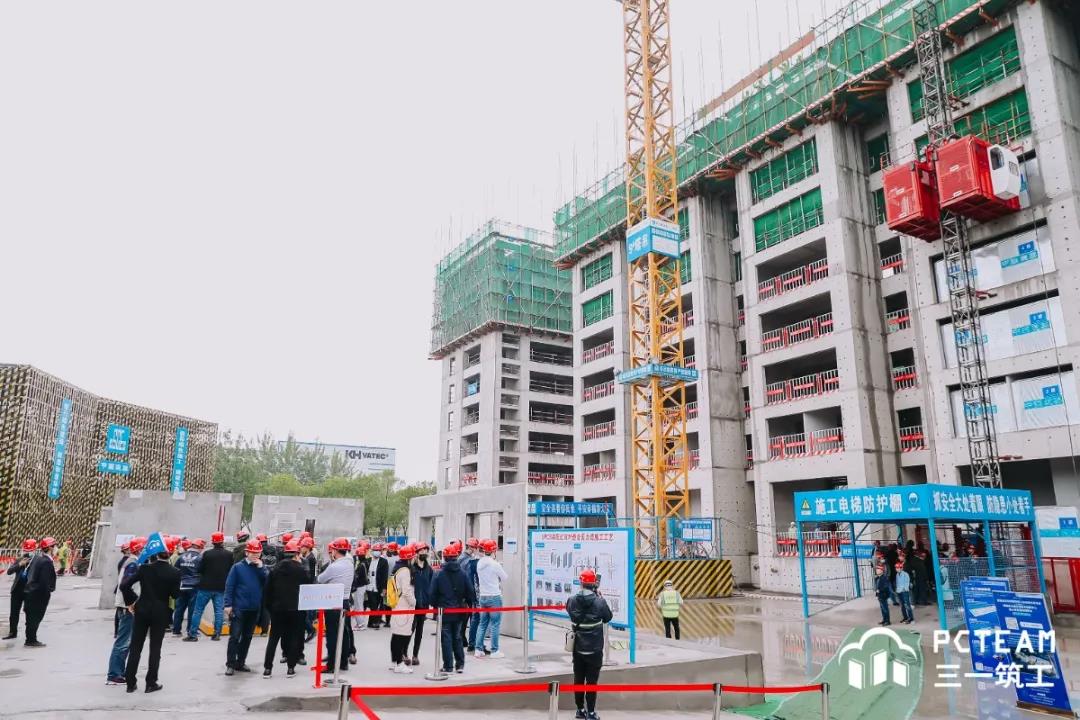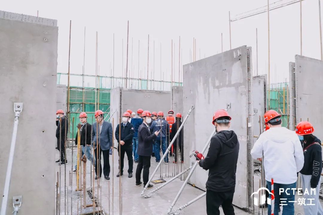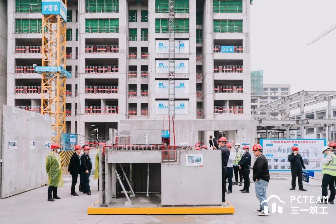 国家合成生物技术创新中心核心研发基地施工项目是国家级重点项目,确保中国建筑工程鲁班奖。项目D2~D5采用SPCS装配式结构体系,采用SPCS空腔预制墙、叠合楼板等预制构件,装配率达到51%,是天津市首个SPCS结构体系落地项目,具有重要的示范意义。D区为配套服务区,塔楼建筑主要功能为科研用房,裙房建筑主要功能为食堂、运动健身及配套服务用房。D2~D5采用SPCS装配式结构体系,应用面积2.6万平方米,均为地上11层,地下1层。建筑高度:33~35米。全部采用SPCS装配式剪力墙结构体系,使用了SPCS空腔预制剪力墙、钢筋桁架叠合楼板、预制楼梯、ALC预制条板等构件,SPCS空腔预制剪力墙在3层-11层进行应用,钢筋桁架叠合楼板在2层-11层楼板应用,依据国标《装配式建筑评价标准》,装配率达到51%。