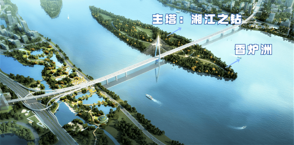 该项目为城市主干道,长约3.24公里,是湘江首座按Ⅰ级航道标准设计的桥梁,是湘江跨度最大的独塔斜拉桥,202米塔高将成为长沙跨江大桥的最高高度,主跨采用“湘江之钻”方案。