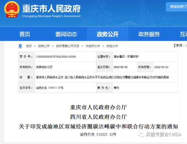 关于印发成渝地区双城经济圈碳达峰碳中和联合行动方案的通知