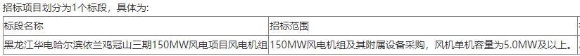 【黑龙江华电哈尔滨依兰鸡冠山三期150MW风电项目风电机组】