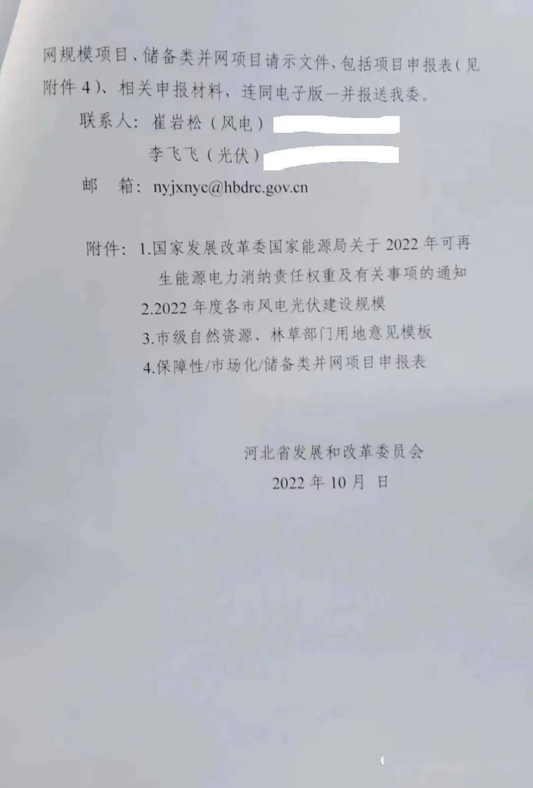 近日,河北省发改委下发《关于做好2022年风电、光伏发电开发建设有关事项的通知》,通知指出:2022年度河北省各市拟安排2022年保障性风、光规模5.24GW、市场化10GW、储备15GW。