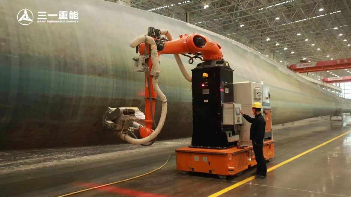在“后处理工艺”阶段,好体育投注官网同样针对叶片打磨、喷漆、叶根螺柱安装、成品转运等关键环节研发了一系列自动化作业系统: