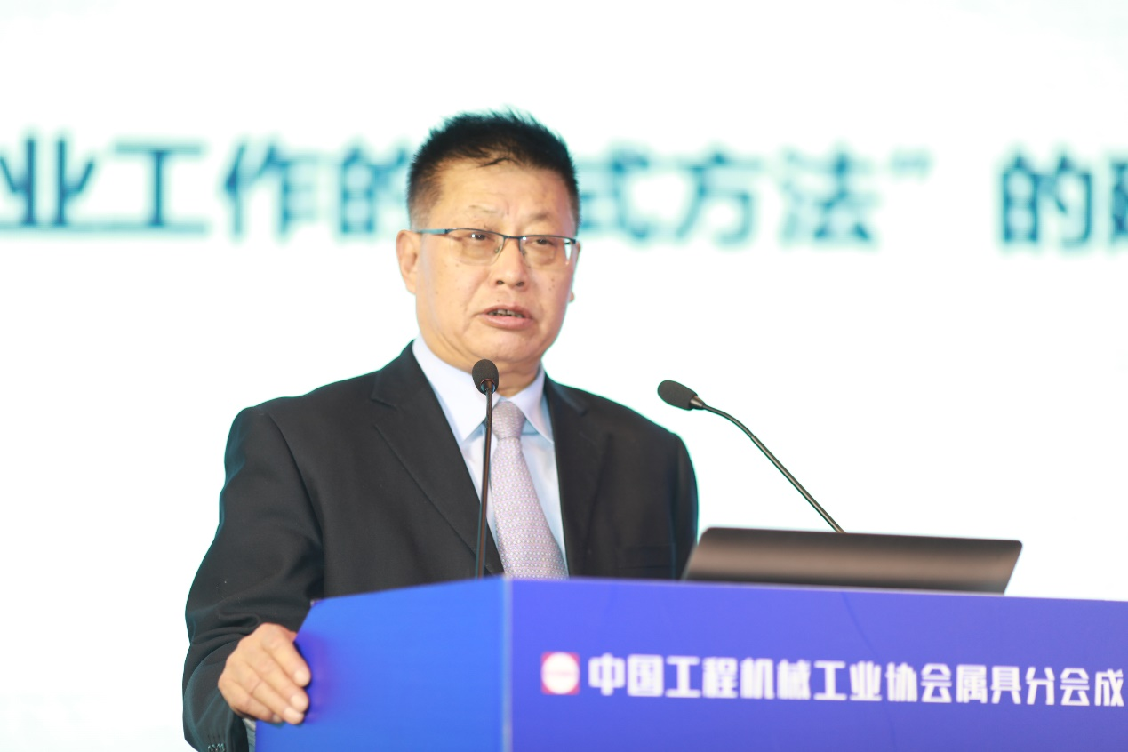 中国工程机械工业协会会长苏子孟在讲话中对属具分会的成立以及第一届理事会成员的当选表示祝贺。他希望属具分会要全心全意为会员单位服务,致力于成为宏观政策的建言者、行业利益的代表者、权威信息的发布者、会员关系的协调者、市场秩序的维护者、企业发展的服务者,为我国属具产业的高质量发展做出贡献。