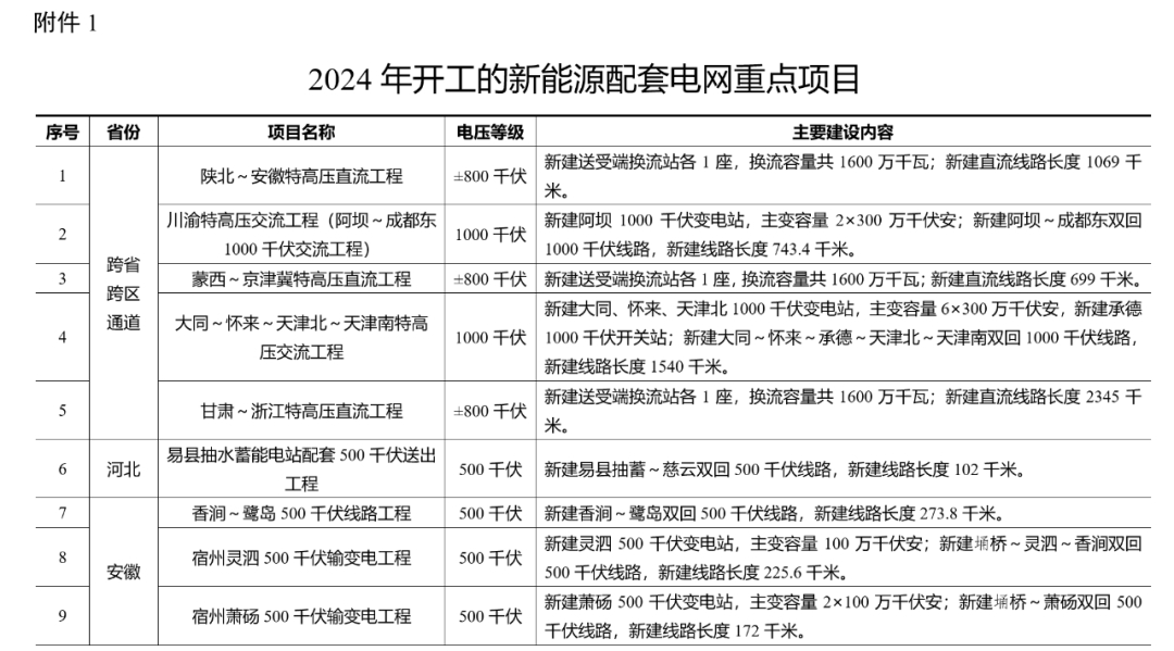 1. 2024年开工的新能源配套电网重点项目