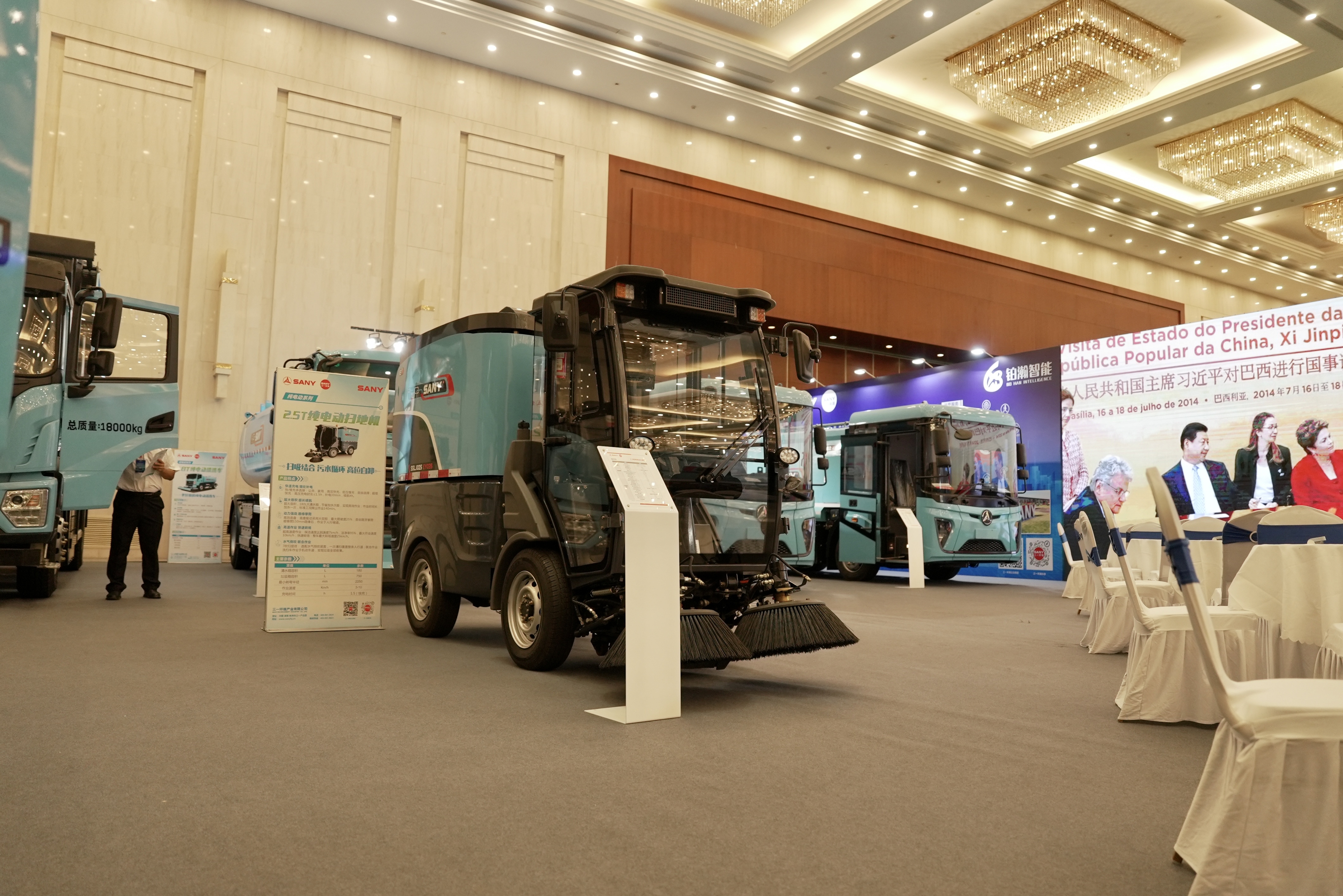 在本次展会上,好体育投注官网环境的展台占地420平米,是会场中最大面积的展厅。展台设计现代简约,绿色与科技元素完美融合,7台展车排列整齐。其中,18吨低入口纯电动洗扫车、12吨低入口纯电动压缩式垃圾车等明星产品,以其高效、智能、便捷的特点,吸引了众多参观者的目光。