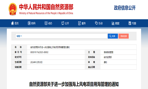 1月2日,自然资源部发布《关于进一步加强海上风电项目用海管理的通知》。