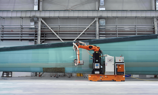 很多人可能想不到,风电机组的关键部件——叶片,其生产长期属于劳动密集型产业,由于体积大、重量大、表面曲面复杂,往往要依靠大量人工完成铺层、灌注、打磨、喷漆等工序。