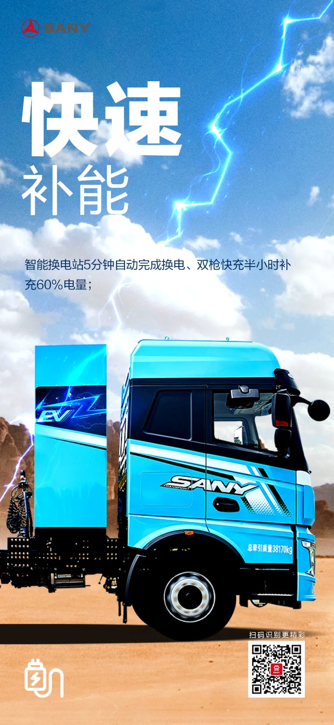 智能换电站5分钟自动完成换电、双枪快充半小时补充60%电量。