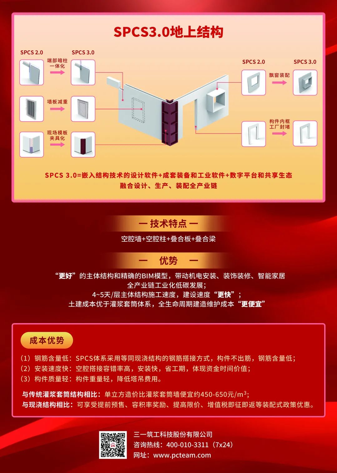 应用“空腔搭接加后浇、定型模具浇节点、墙柱梁板全预制、地下地上全装配”的SPCS全预制装配式建筑系统,可实现: