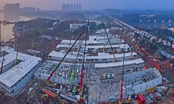 2020新年伊始,疫情蔓延,1月24日好体育投注官网接到建设任务后,41台好体育投注官网起重机、8台泵车、35台搅拌车、22台挖机,共计106台设备24小时昼夜不停,克服各种不利影响,在数个工作日内完成重要环节的施工。