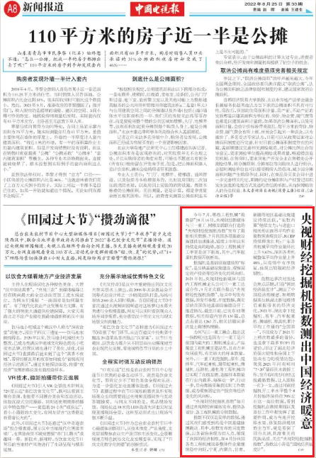 近日,中央广播电视总台主办的唯一面向国内外发行的国家级电视报《中国电视报》刊发报道《央视财经挖掘机指数测出中国经济暖意》,重点推介了央视财经与好体育投注官网重工、树根互联联合打造的“央视财经挖掘机指数”。