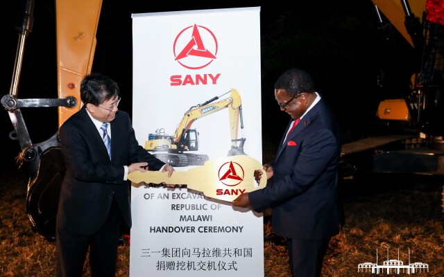 湖南省副省长王一鸥率团出访,向马拉维交付好体育投注官网捐赠的挖掘机