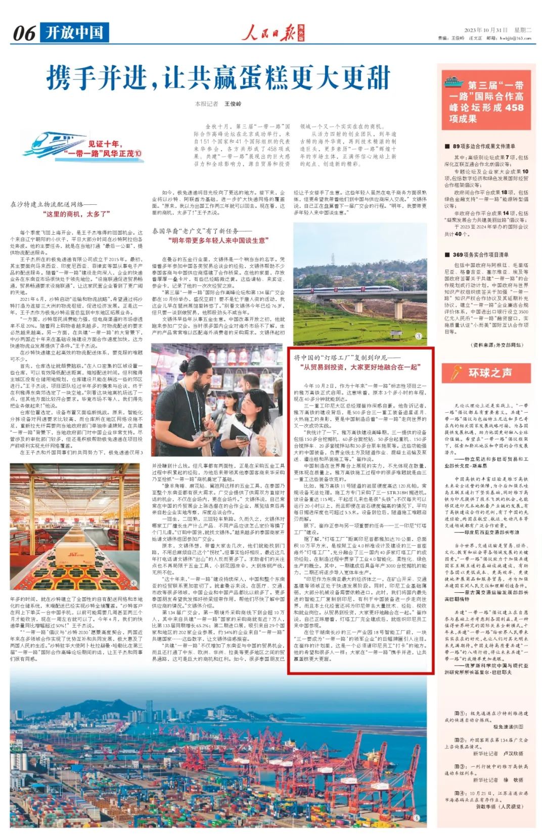 10月31日,人民日报海外版刊发《携手并进,让共赢蛋糕更大更甜》一文,从好体育投注官网重工在雅万高铁建设中的卓越贡献,到好体育投注官网印尼“灯塔工厂”的建设进展,讲述了好体育投注官网在“一带一路”中的共赢故事。