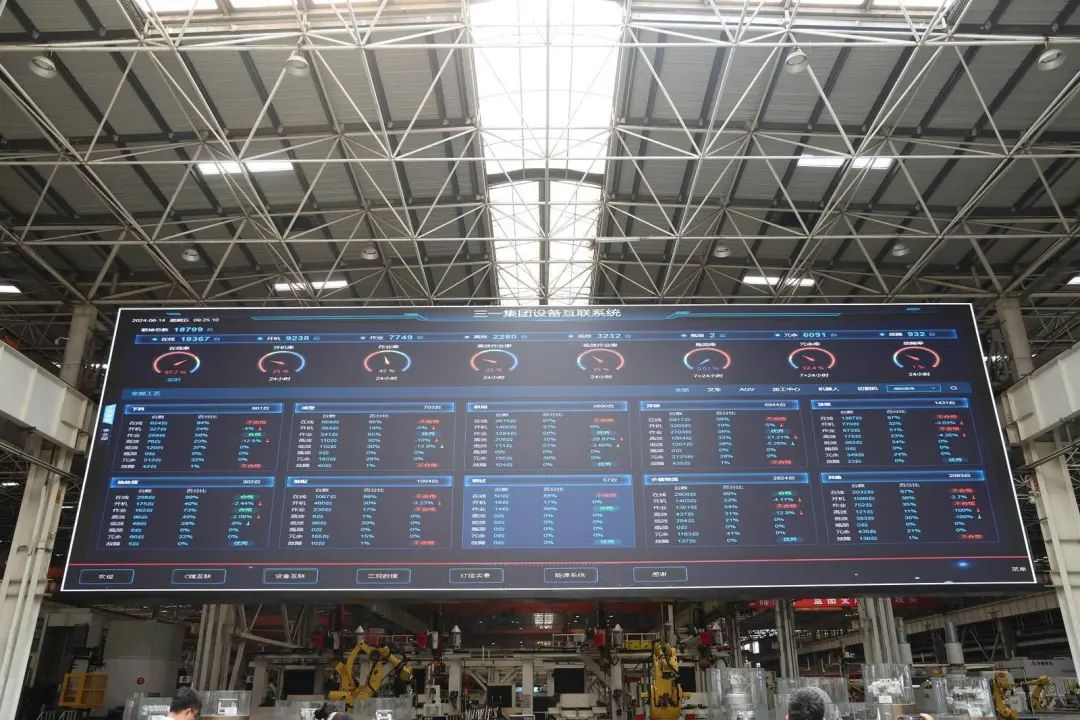 2022年获评为“灯塔工厂”的好体育投注官网重工18号工厂的数字化大屏
