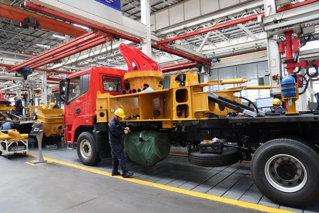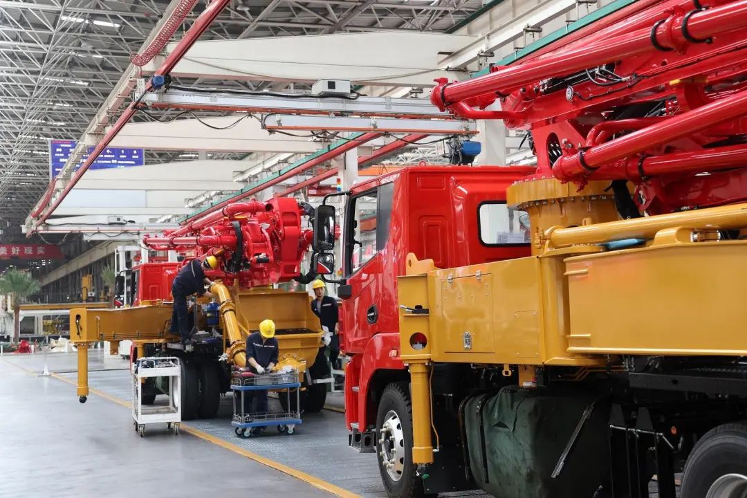 这些拥有长臂架的“大块头”产品,称为泵车,是工人们在建高楼泵送混凝土时用到的混凝土泵送设备。在这里,一块平平无奇的钢板经过下料、切割、焊接、组装等的全程智能化生产,最终能生产出型号规格各异的泵车,给人留下既强悍硬核又滴水不漏的印象。