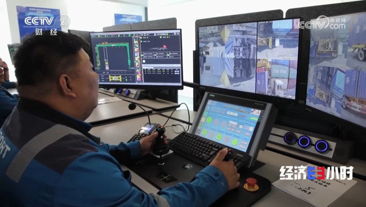 天津港太平洋集装箱码头场桥队班长 张良皓:现在手动的环节比原先难度降低了很多,因为它的画面、视觉、视角、操作等等的这些都简单化了。
