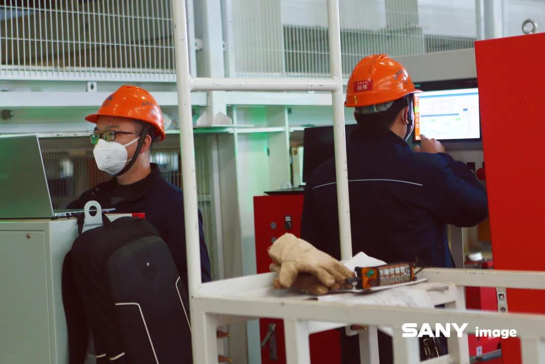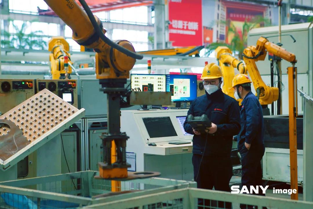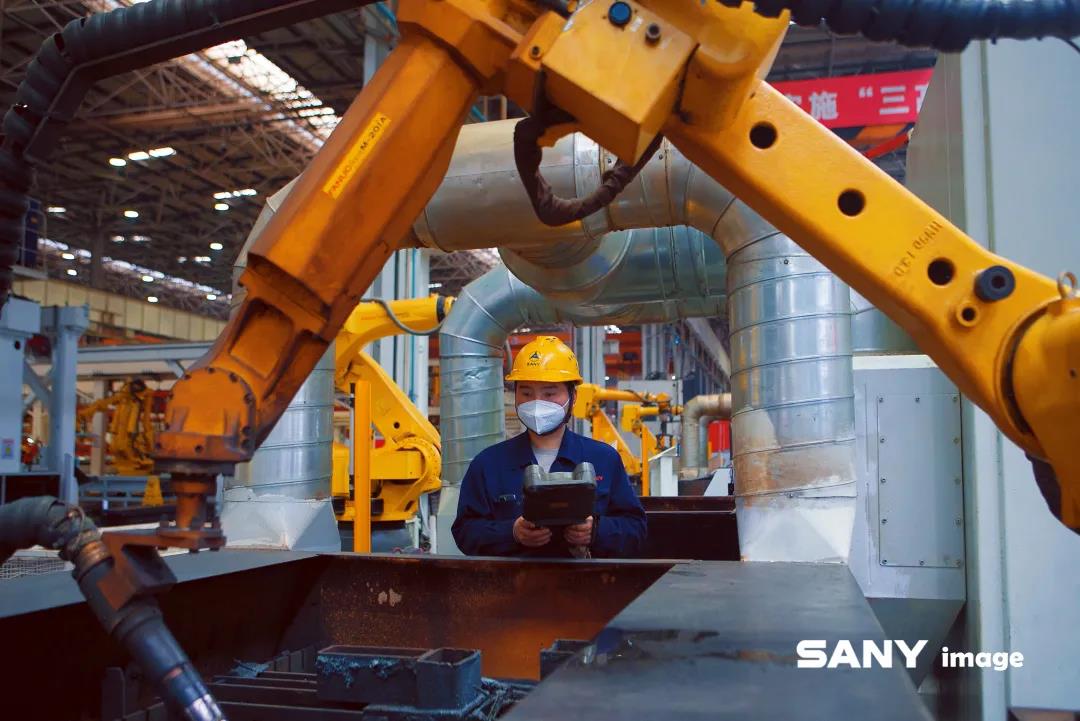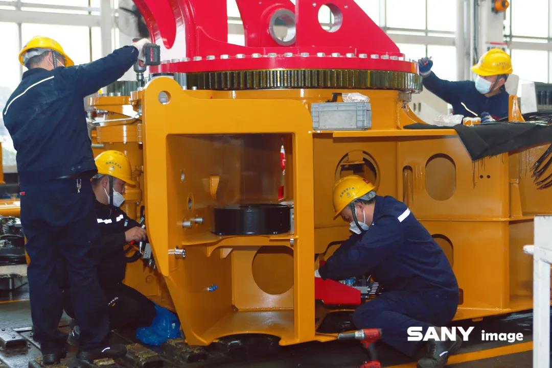 2月5日8点18分,泵送公司总经理陈添明、副总经理兼制造部部监刘志福、泵送公司全体同仁相聚在18号厂房,挥舞旗帜奔向新年目标,喜迎2022年新春第一台泵车下线!
