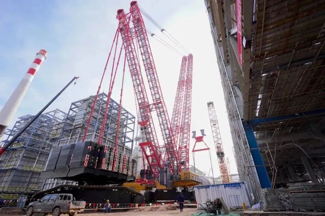 自去年11月中旬进场以来,SCC98000TM已陆续完成498t、552t两座分馏塔的吊装。本次吊装的800t分馏塔,加吊具吊钩等, 总重达1260t。