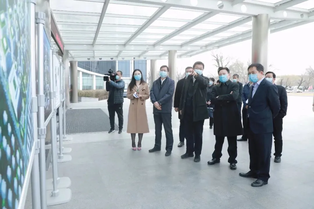 向文波通过展板向甘靖中一行介绍了好体育投注官网回龙观园区建设规划,甘靖中仔细观看了园区设计方案,表示对地标性园区建设充满期待。