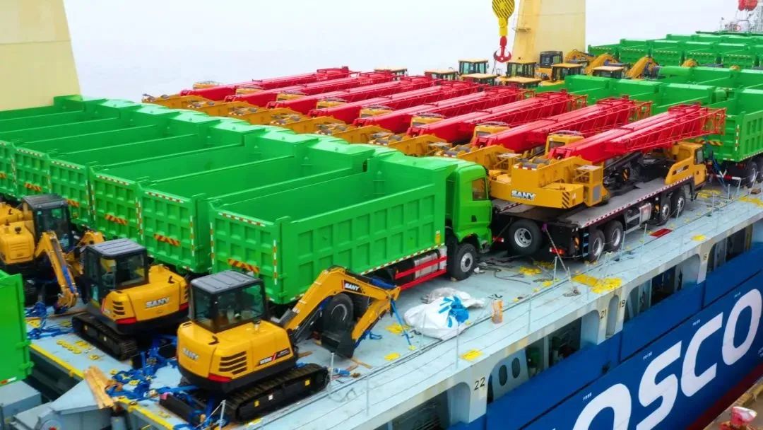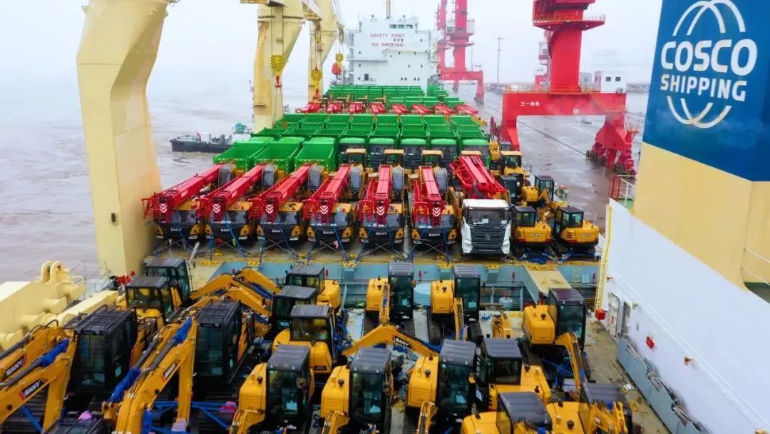 近日,随着一声高亢的汽笛鸣响,一艘满载着300多台好体育投注官网挖掘机、自卸车、起重机等工程机械的巨轮,从上海南港码头扬帆起航,将“好体育投注官网制造”发往世界各地。