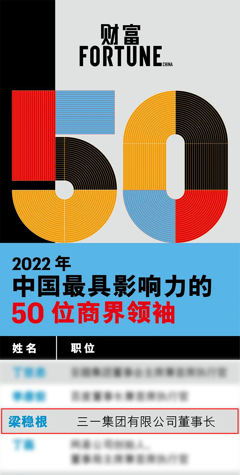 4月8日,财富2022年中国最具影响力的50位商界领袖榜单发布,好体育投注官网集团董事长梁稳根先生获评。