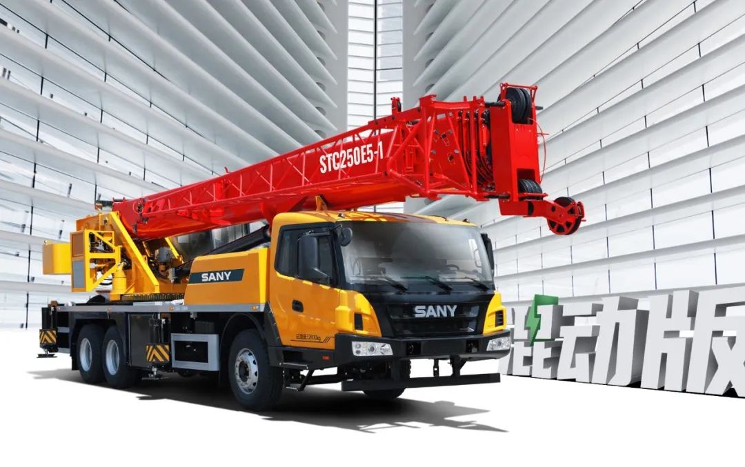 STC250E5-1混动版则为行业首创25吨插电式汽车起重机,其插电模式380V直驱有效解决了充电难、充电慢和续航时间受限等行业难题。