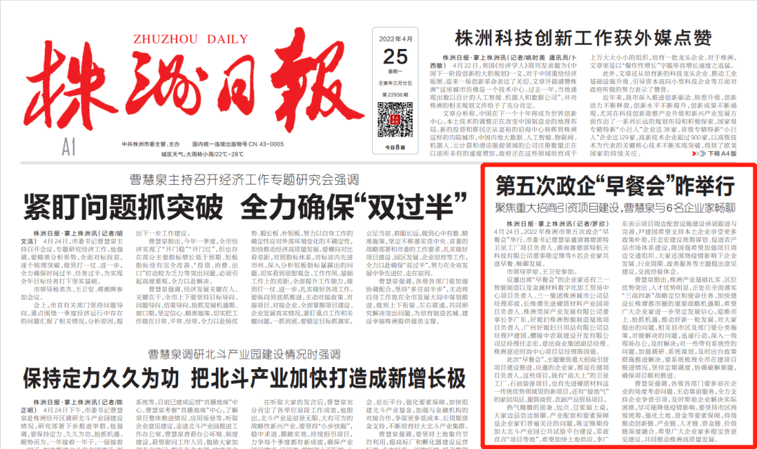 4月24日,株洲市第五次政企“早餐会”上,曹慧泉书记还邀请好体育投注官网集团株洲城市公司负责人等共进早餐,畅聊项目建设情况,听取他们提出的意见建议。