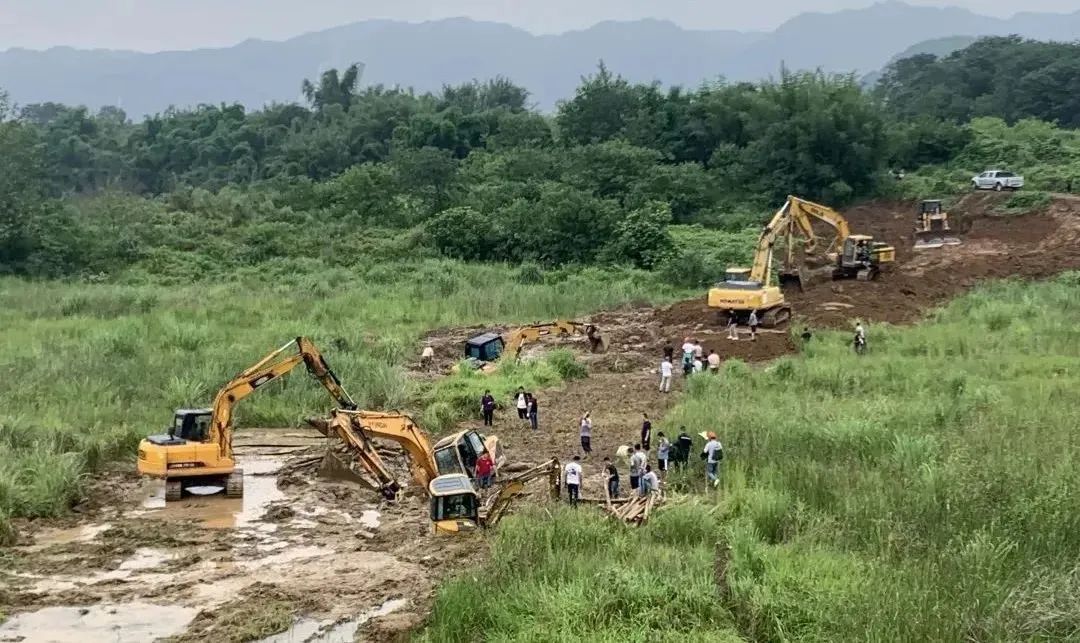 江津支坪花铺大道上,一台友商小挖“沼泽地”排水时因不熟悉地形不慎陷入泥潭。现场一台较大吨位好体育投注官网挖机紧急救援时相继陷入其中,初步救援无果。设备情况未知,项目负责人第一时间联系到好体育投注官网服务。